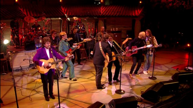 Where to start? Well, the performance of “My Back Pages” is one of the greatest concert moments captured on tape. A Who’s Who of icons sang a verse of the song including Roger McGuinn, Tom Petty, Neil Young, and Eric Clapton. After Dylan steps in and offers a take, he gives way to George Harrison to sing the climatic closing stanza with the lines Good and bad, I define these terms. Quite clear, no doubt, somehow. Ah, but I was so much older then. I’m younger than that now. It was a nice tip of the cap to Harrison, who had not performed live in the US for over 18 years. The house band for the show were the surviving members of Booker T. and the MG’s: Booker T. Jones on organ, Donald “Duck” Dunn on bass, and Steve Cropper on guitar. Joining them are drummers Anton Fig and Jim Keltner with longtime Saturday Night Live bandleader G. E. Smith adding guitar and serving as the musical director.