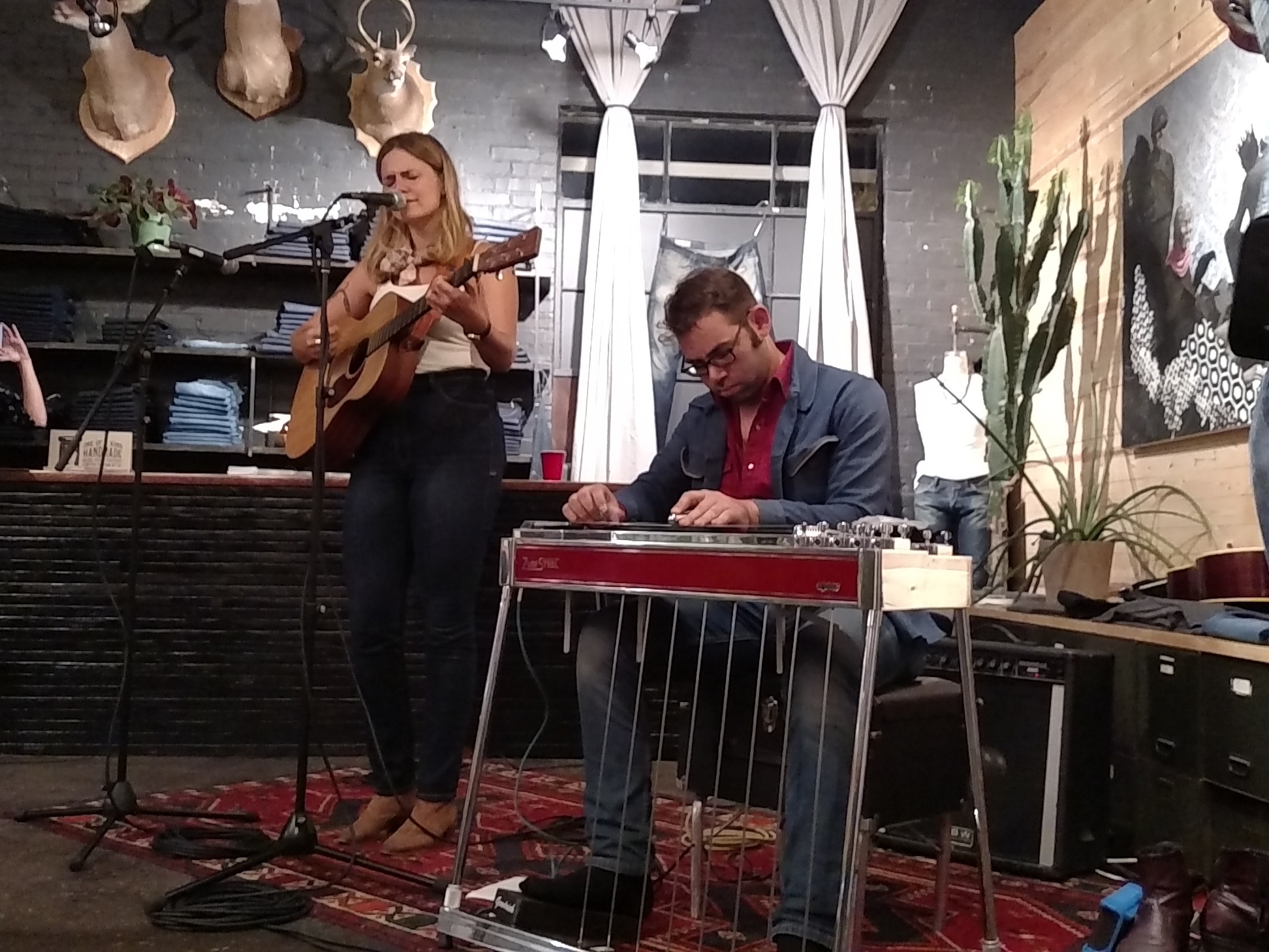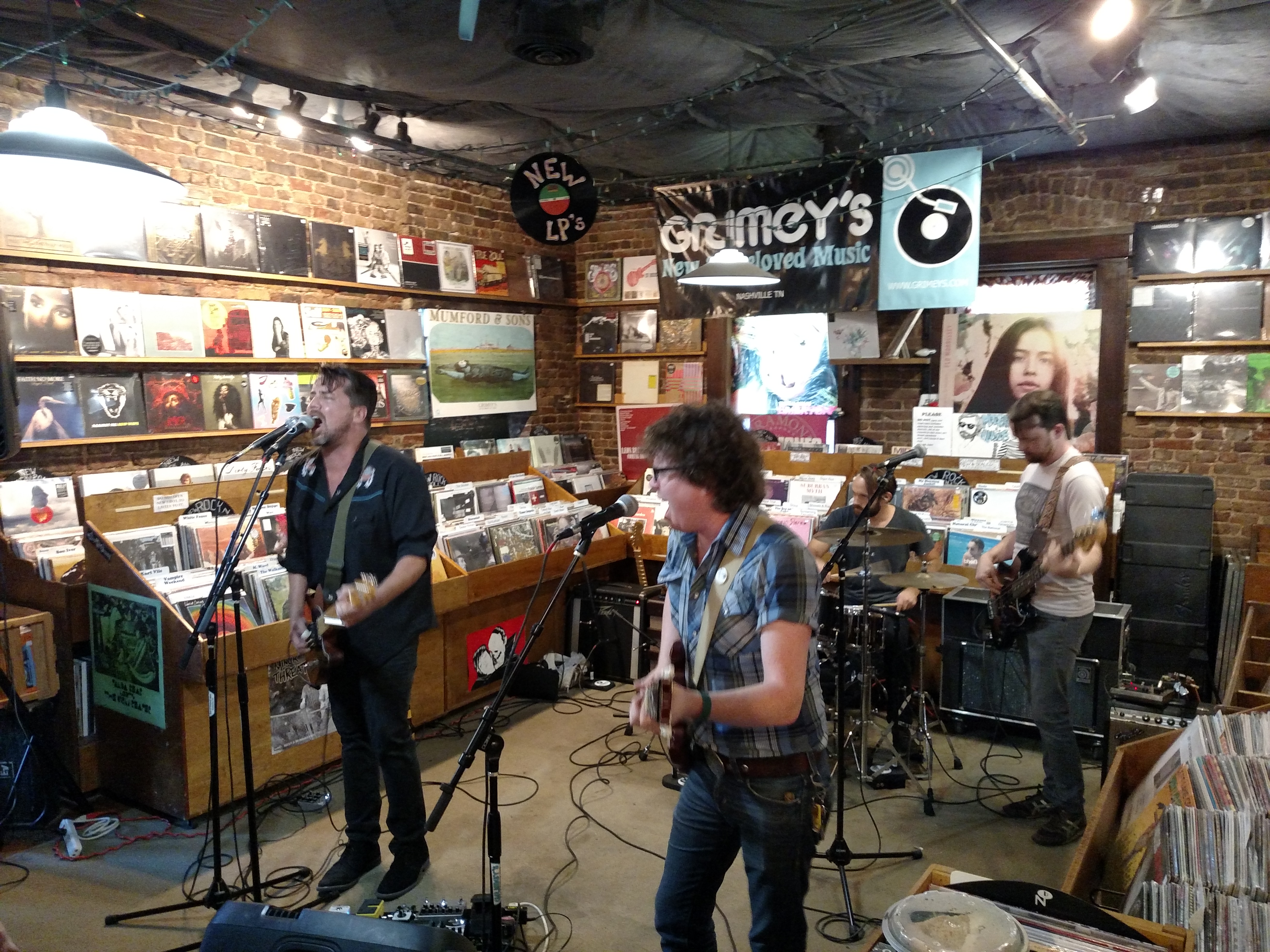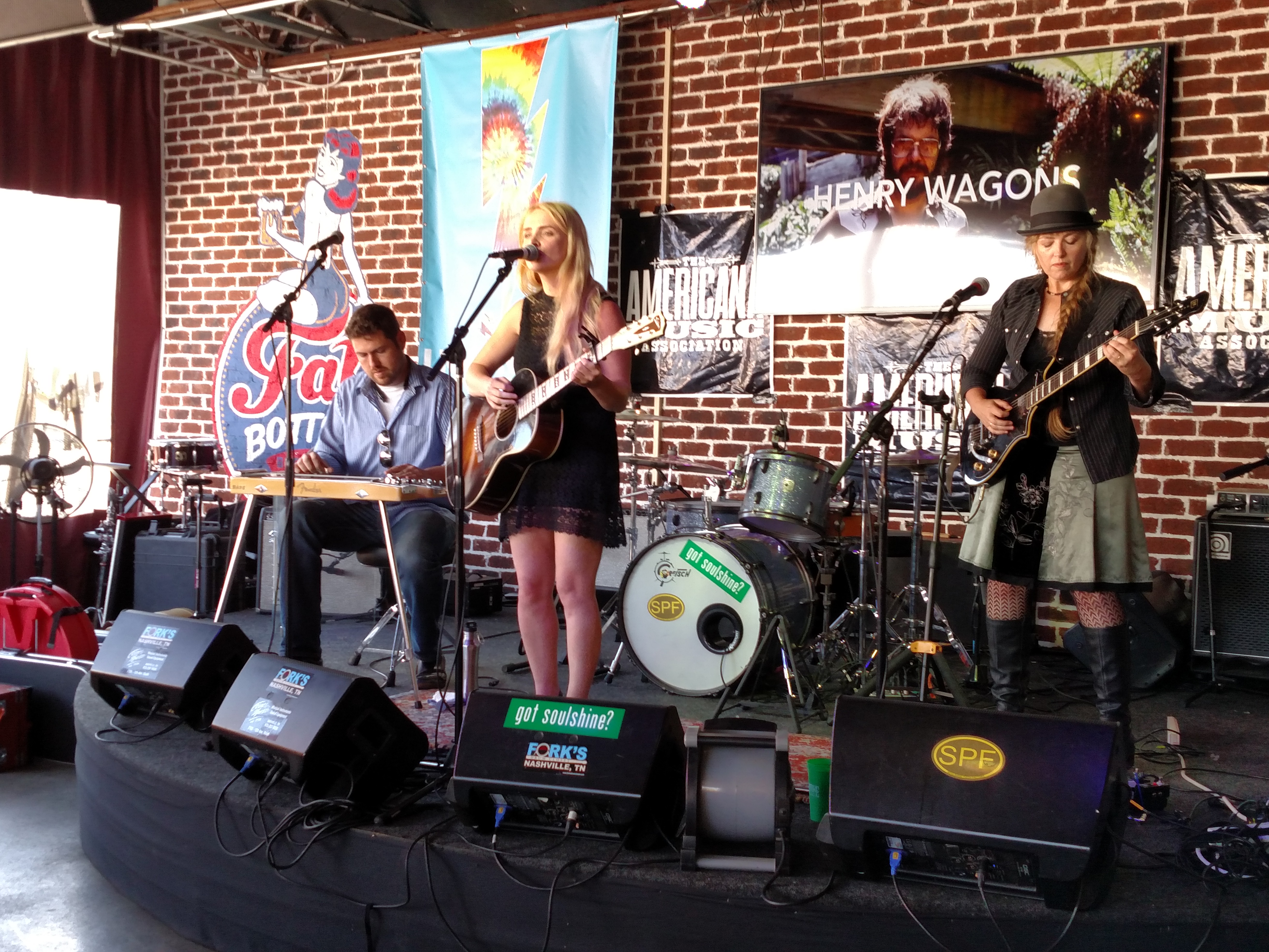 After eight hours of driving from Akron, Tuesday evening began with a jolt of java from Frothy Monkey next door to Grimey’s New & Preloved Music before the in-store CD release Daytime Turned To Nighttime from Massillon’s favorite son Patrick Sweany. Bob McAdam, my friend I met through SXM The Loft and travels to many musical destinations, joined us for a Yazoo Dos Perros down in The Basement. I made a dent in my shopping wish list with four new vinyl records using my AMA discount before the band began their set upstairs. Wrapped in an undercover beer hugger resembling a paper bag, Lagunitas Brewing Company was offering up complimentary beverages. From there, we went off the grid toward South 12th Street and the swanky Imogene + Willie clothing store to catch Joseph LeMay, who released the brilliant Seventeen Acres that was one of my favorite releases in 2014. Opening for LeMay was the lovely Erin Rae McKaskle playing a few tracks from her brand new release Soon Enough accompanied by pedal steel player Brett Resnick. Wings were the choice for dinner paired with a Terrapin Pumpkinfest served up in a mason jar at Edley’s Bar-B-Que a quick stroll down the street. Staying off course, we headed over to East Nashville and The 5 Spot for $2 Tuesday with Los Colognes. The house band would be backing several artists including Robyn Hitchcock, Emma Swift, Derek Hoke, Patrick Sweany, JP Harris, Rayland Baxter, Caitlin Rose, Alanna Royal, Allen Thompson, Justin Collins, Tristen Gaspadarek, and Erin Rae MacKaskle with their take on solo material from the John, Paul, George, and Ringo catalog. Jackalope Thunder Ann was quenching our thirst inside the packed house. Six degrees of separation was seeing good friends Scott and Kim Collins of The Smoking Flowers as they were there to support Scott’s brother. We decided to call it a night about 1:45AM Ohio time to end an illustrious first day.